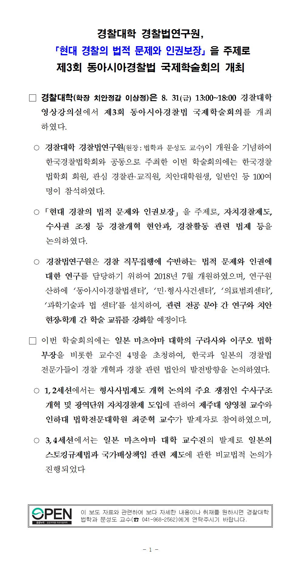 2018 아시아 경찰대학생 축제(PASFA) 개최 보도자료