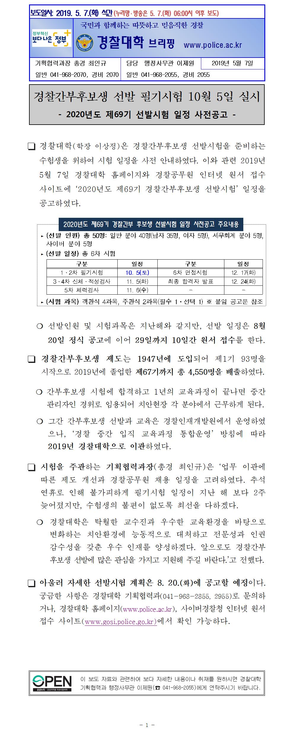 2020학년도 경찰대학 신입생 원서접수 보도자료