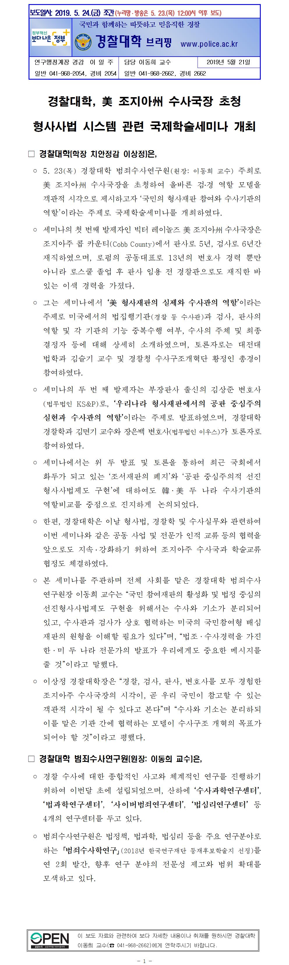 경찰대학 美 조지아 州 수사국장 초청 국제학술세미나 개최 보도 자료