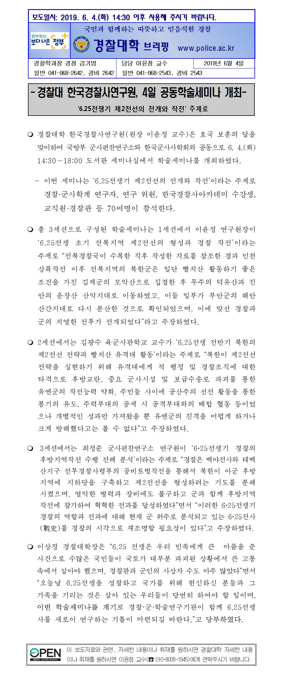 경찰대 한국경찰사연구원 공동 학술세미나 보도자료
