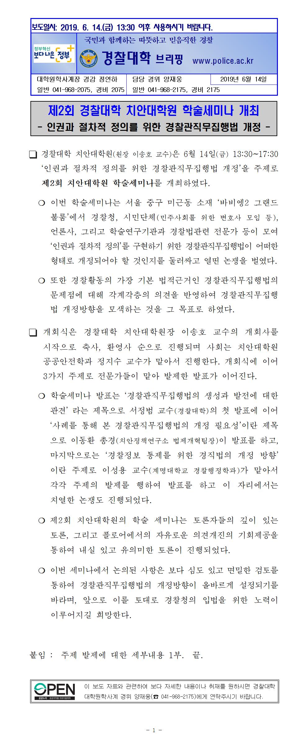 치안대학원 학술세미나 개최 보도자료