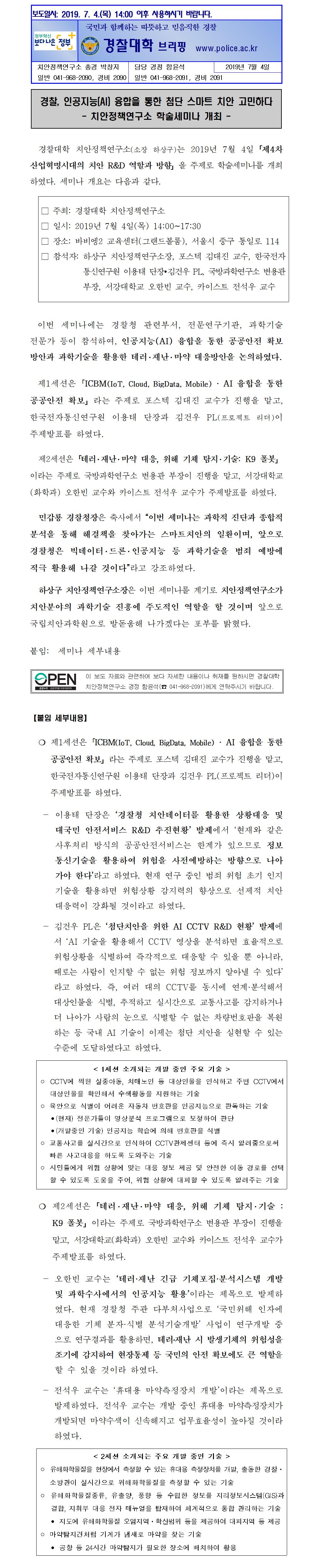 2019 치안정책연구소 학술세미나 보도자료