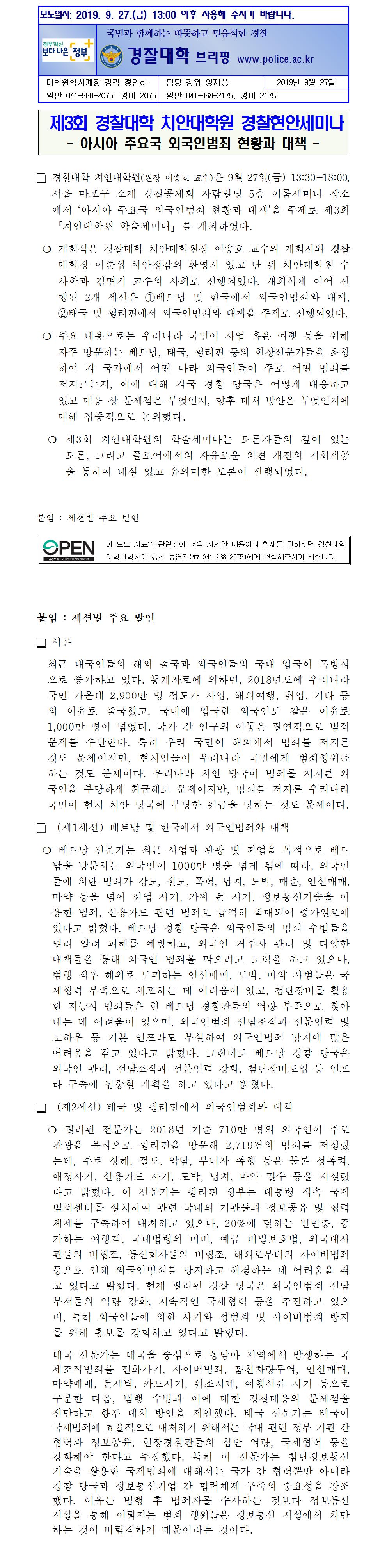 치안대학원 세미나 보도자료