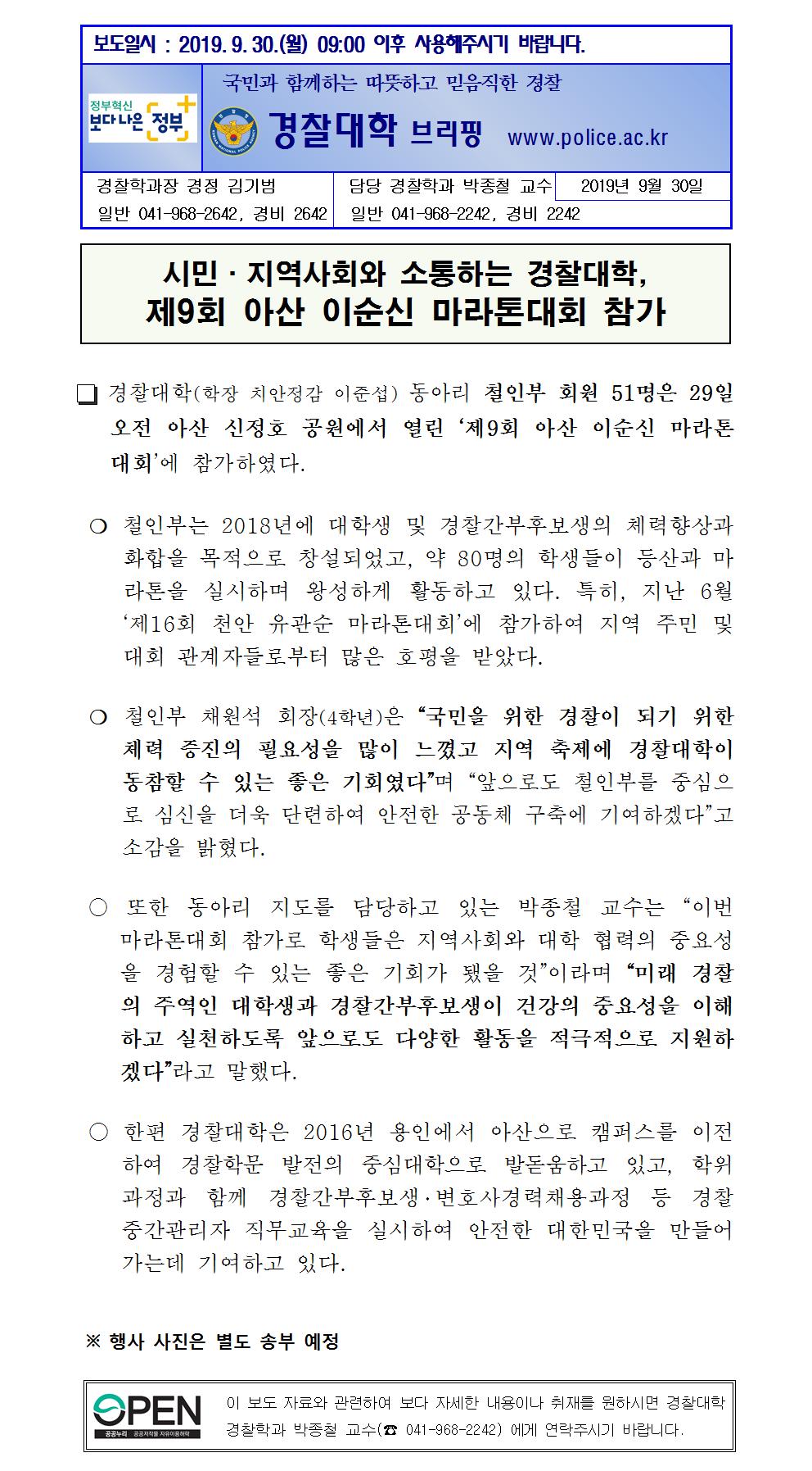 제9회 아산 이순신 마라톤대회 참가 보도자료