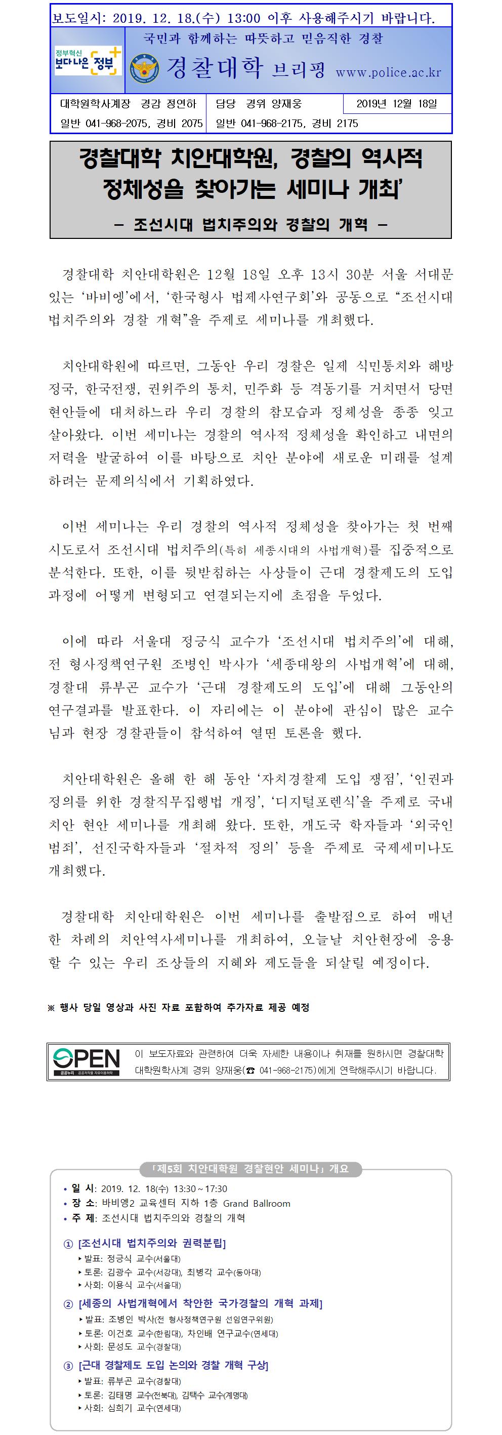 조선시대 법치주의와 경찰의 개혁 세미나 개최