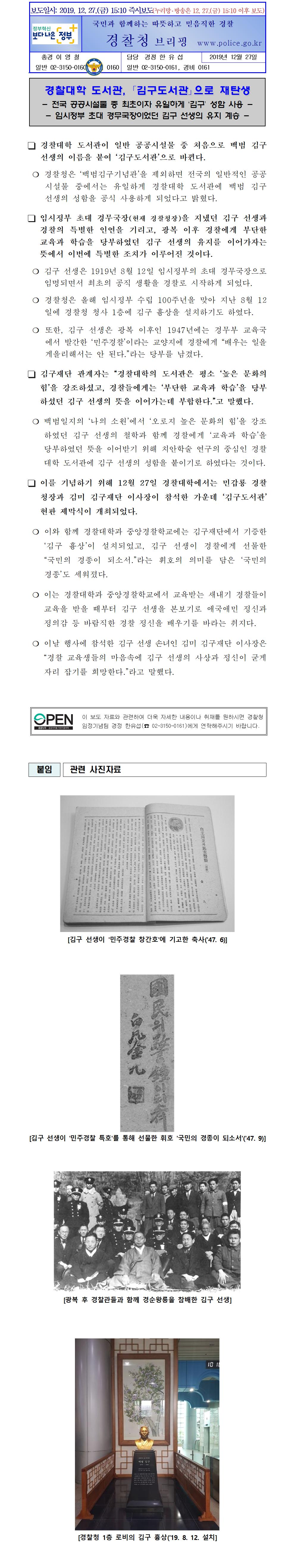 경찰대학 김구도서관 보도자료