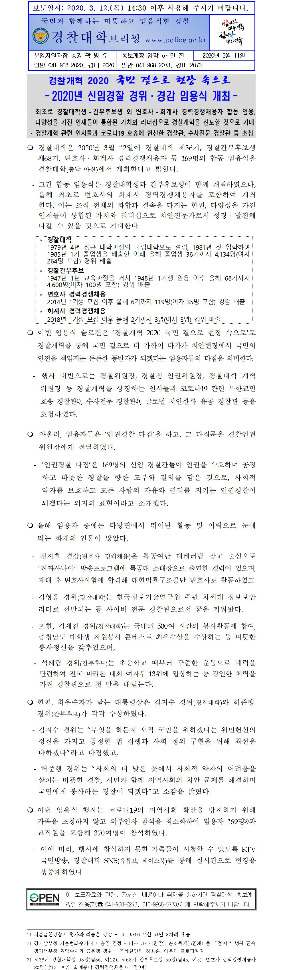 2020 경위경감 신임경찰 임용식 보도자료