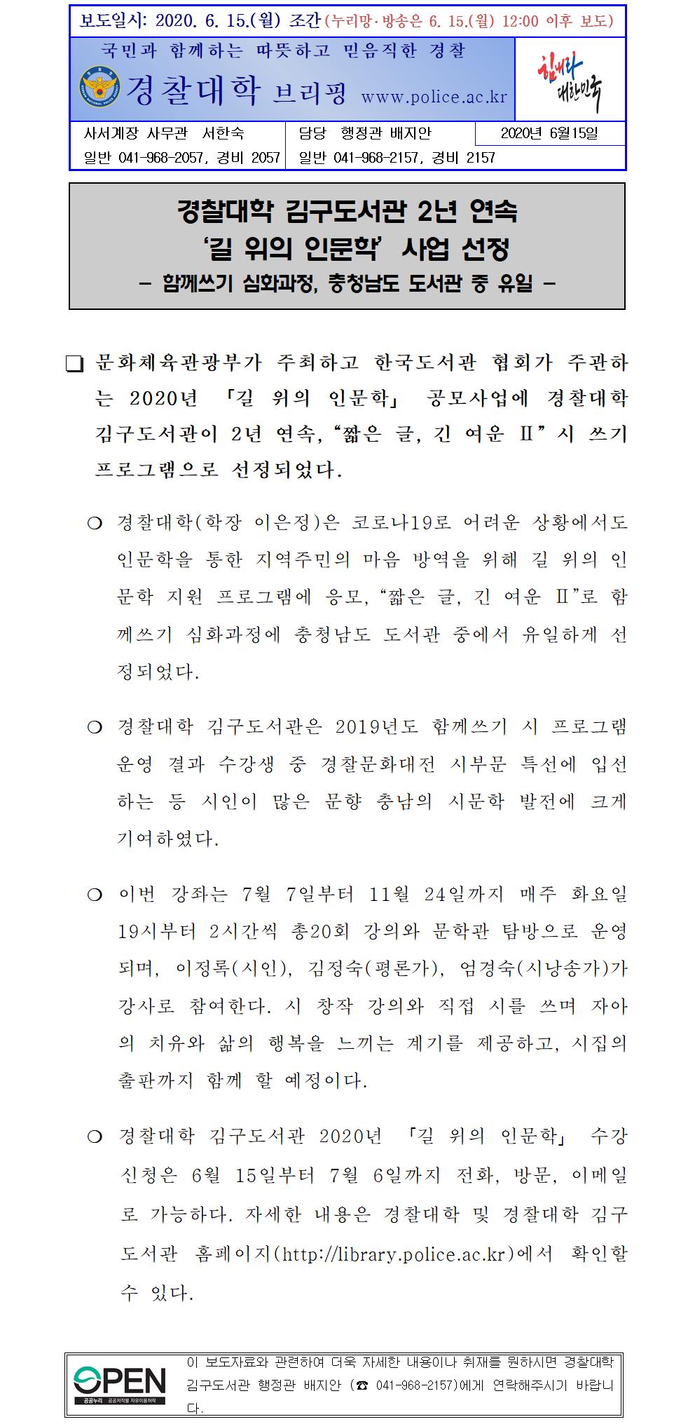 경찰대학 김구도서관 2년 연속 사업선정 보도자료