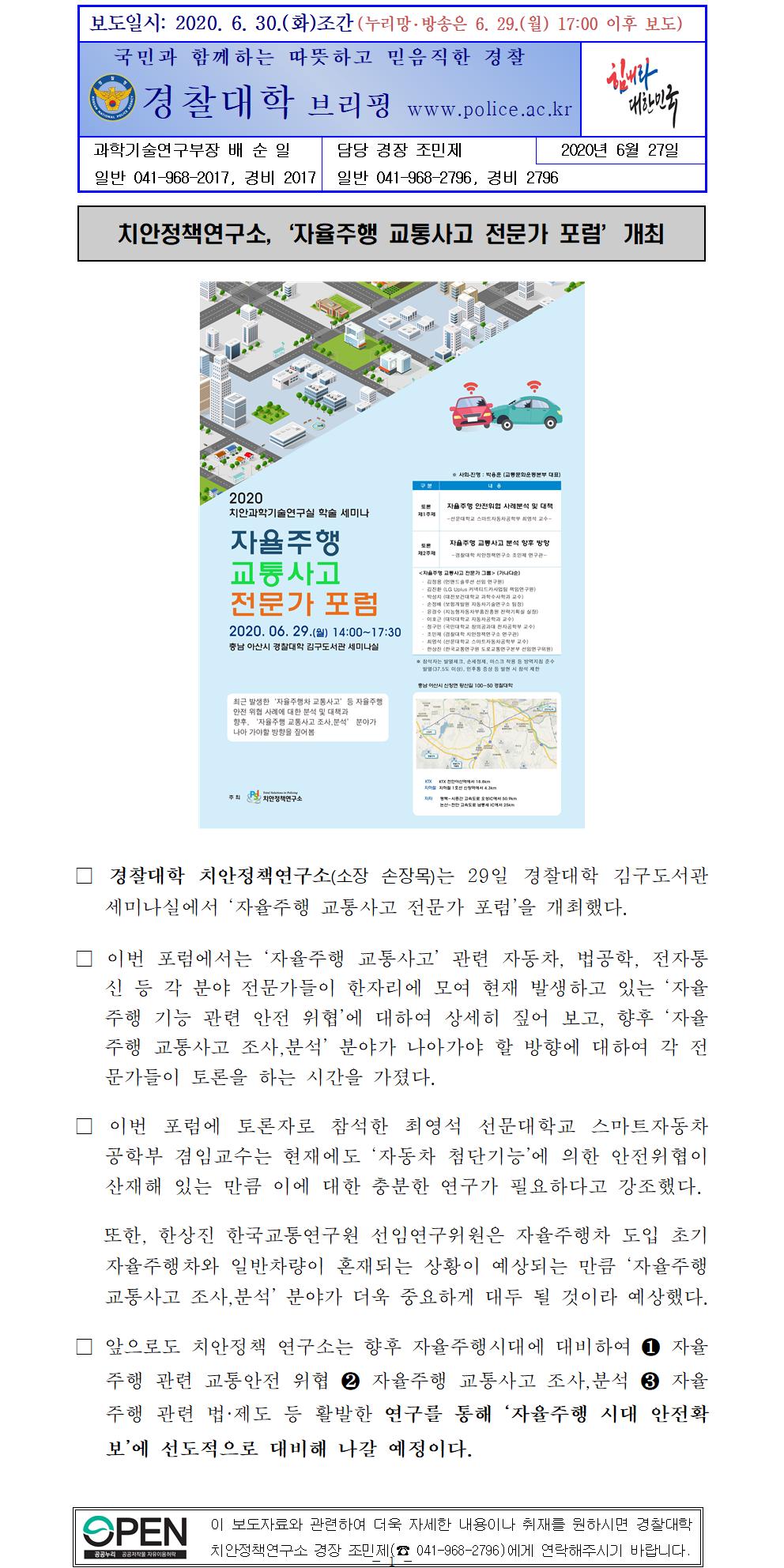 치안정책연구소,‘자율주행 교통사고 전문가 포럼’개최