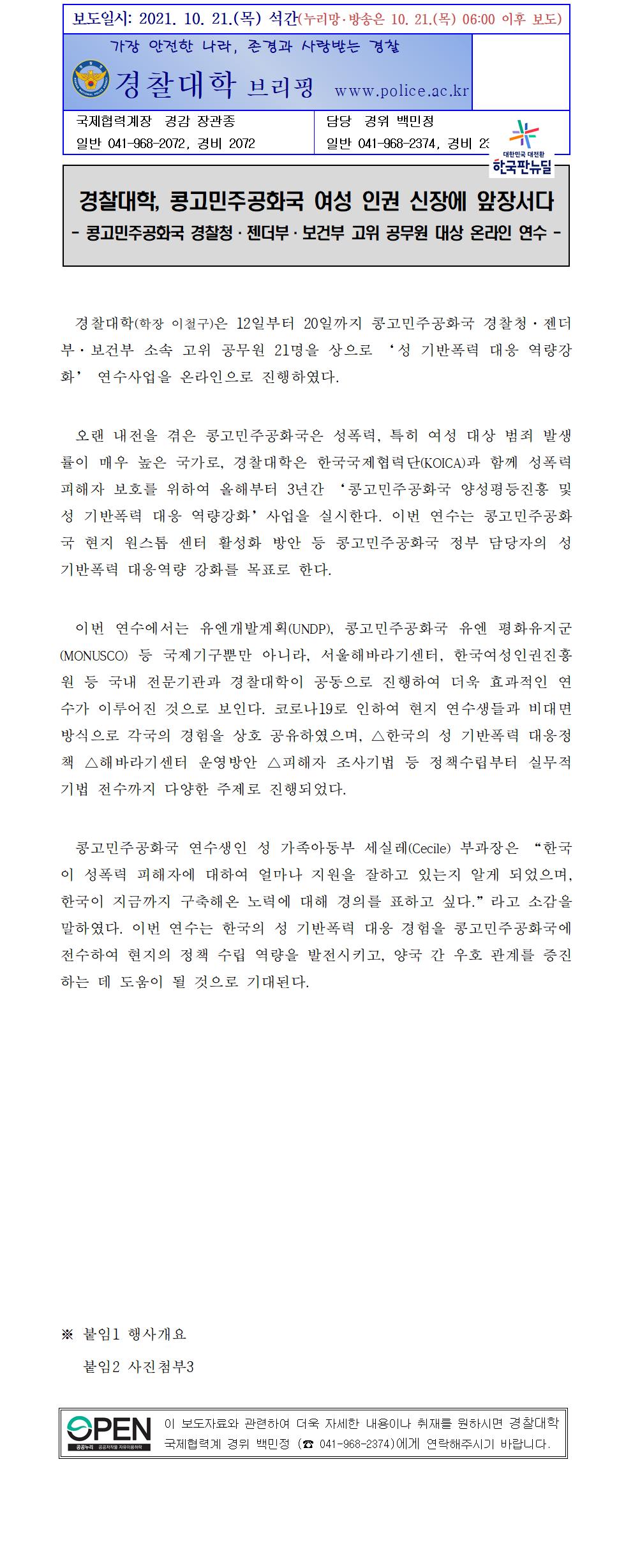 경찰대학, 콩고민주공화국 고위공무원 성폭력 대응교육 보도자료