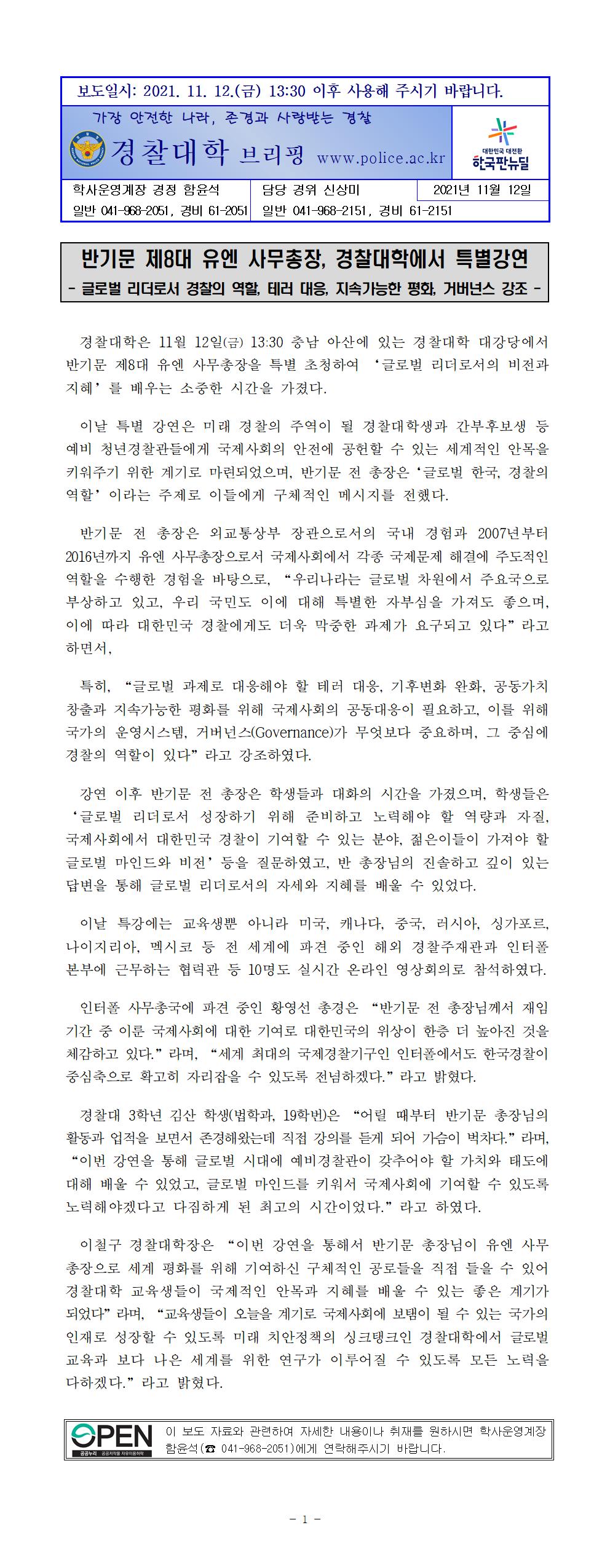 211112 반기문 제8대 유엔 사무총장 초청 강연 관련 붙임.hwp