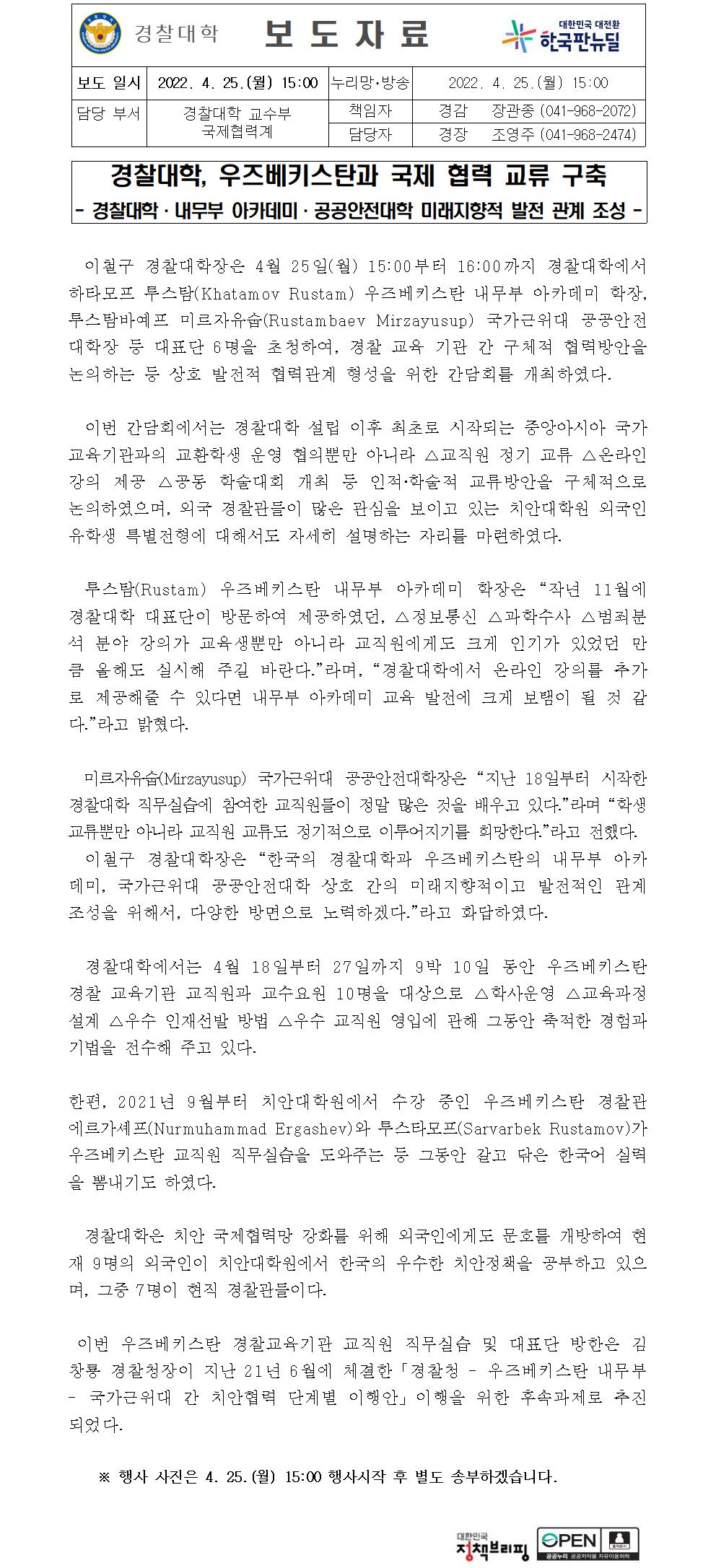 경찰대학 2022 대테러 고위급 국제심포지엄 개최