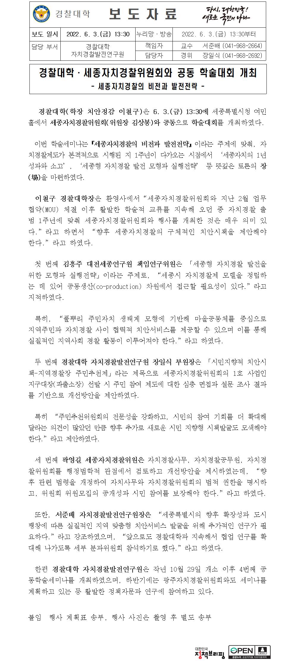 경찰대학·세종자치경찰위원회와 공동 학술대회 개최