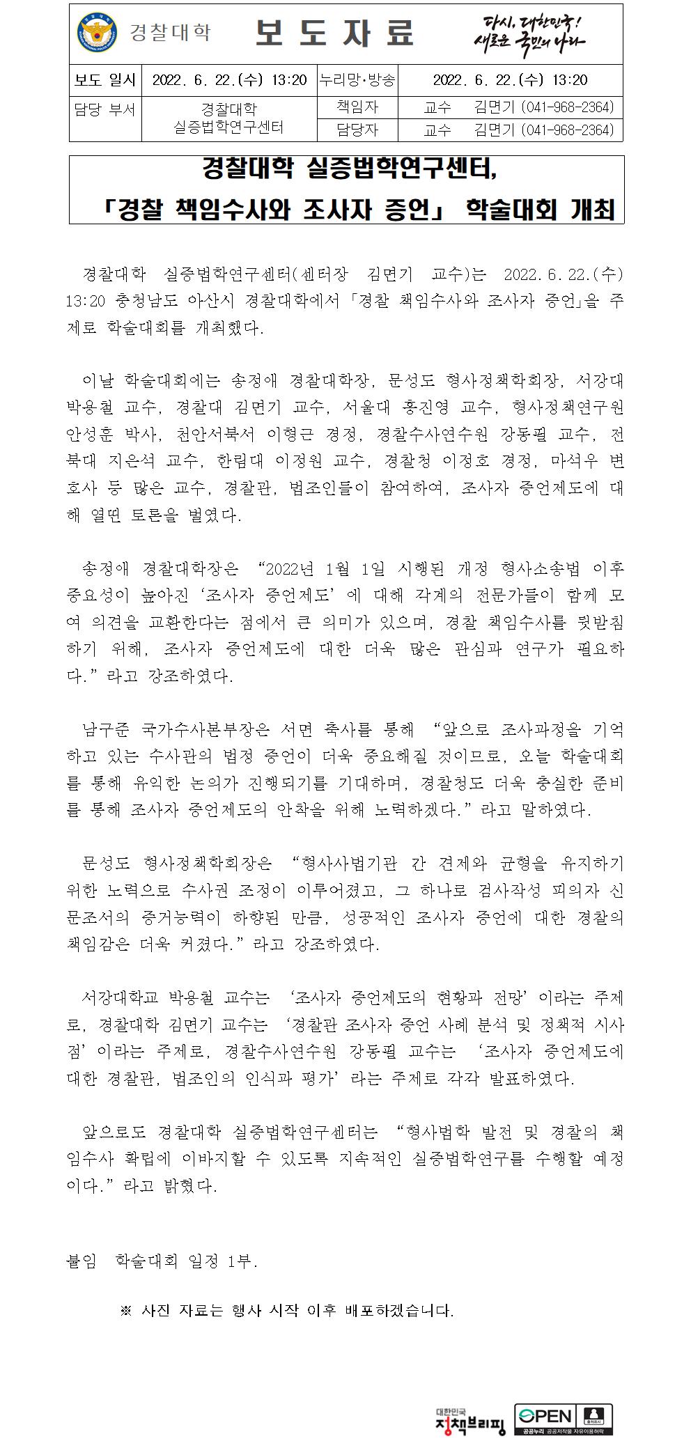 경찰대학 실증법학연구센터 조사자증언 학술대회 보도