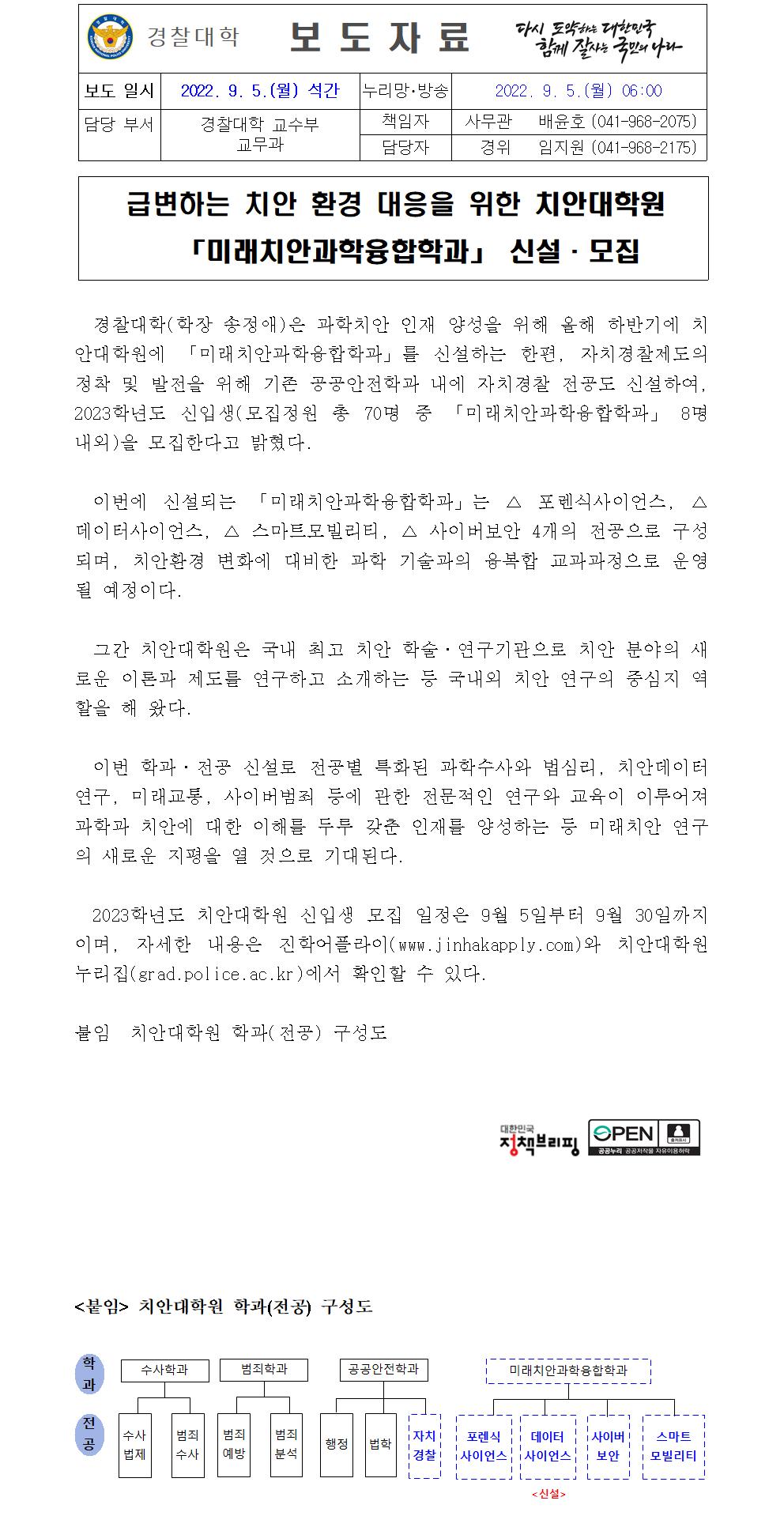 치안대학원 미래치안과학융합학과 신설 모집(경찰대학)