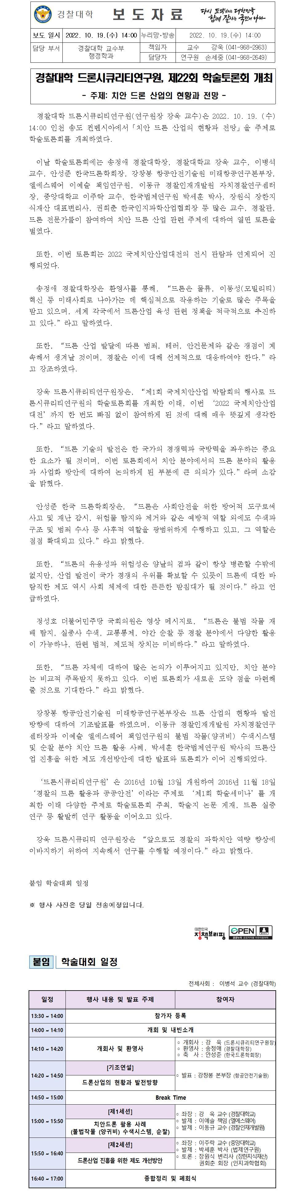 경찰대학 드론시큐리티연구원, 제22회 학술토론회 개최
