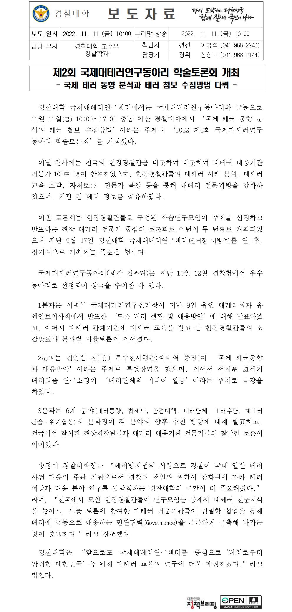 제2회 국제대테러연구동아리 학술토론회 개최