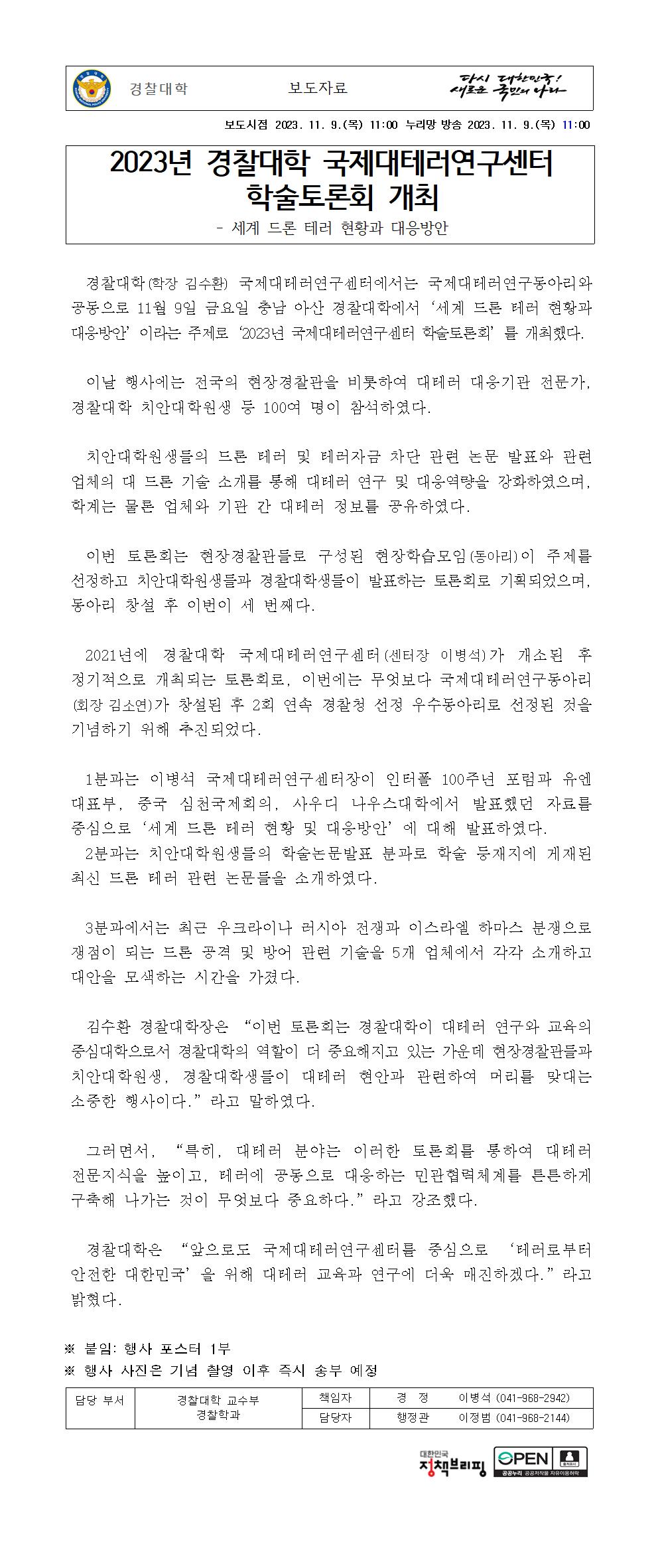 231109 (11시)국제대테러연구센터 학술토론회 개최(배포용).hwp