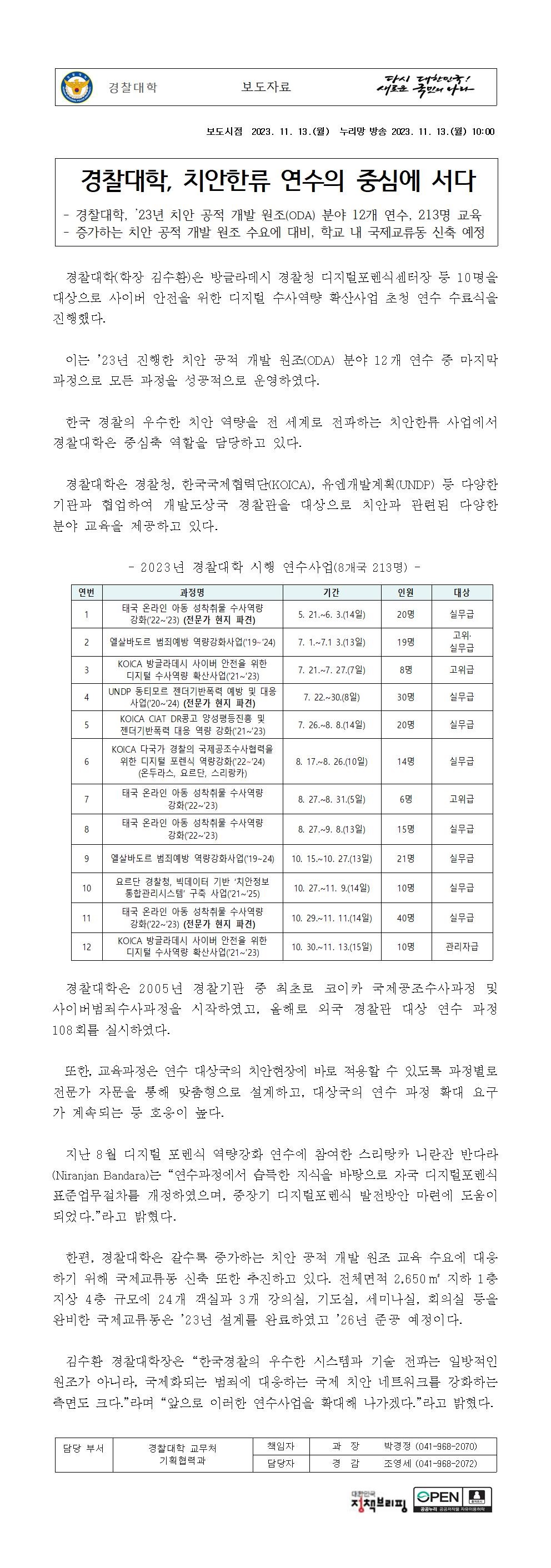231113 (10시_감수안) 방글라데시 경찰청 디지털 수사 역량 확산사업 초청연수 수료식(경찰대학).hwp