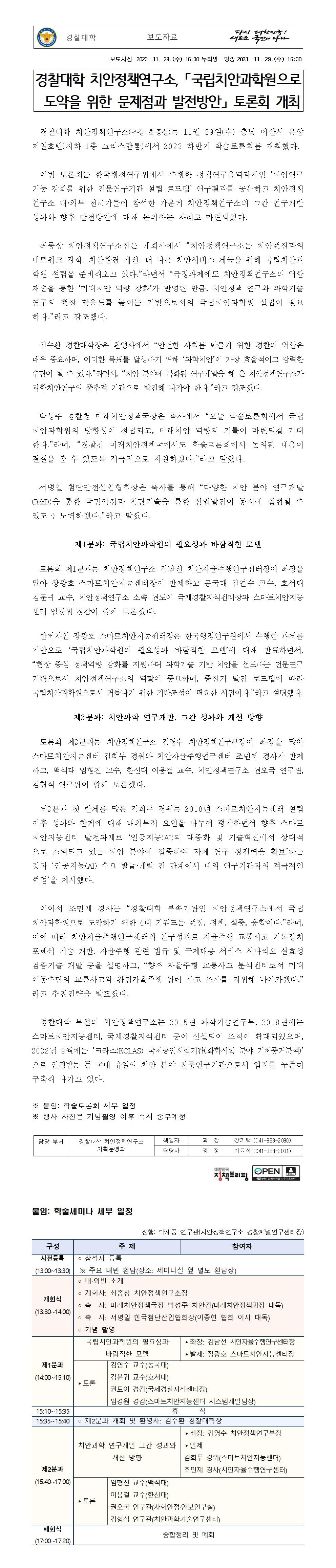 231129 (16시30분) 경찰대학 치안정책연구소 토론회 개최(배포용).hwp