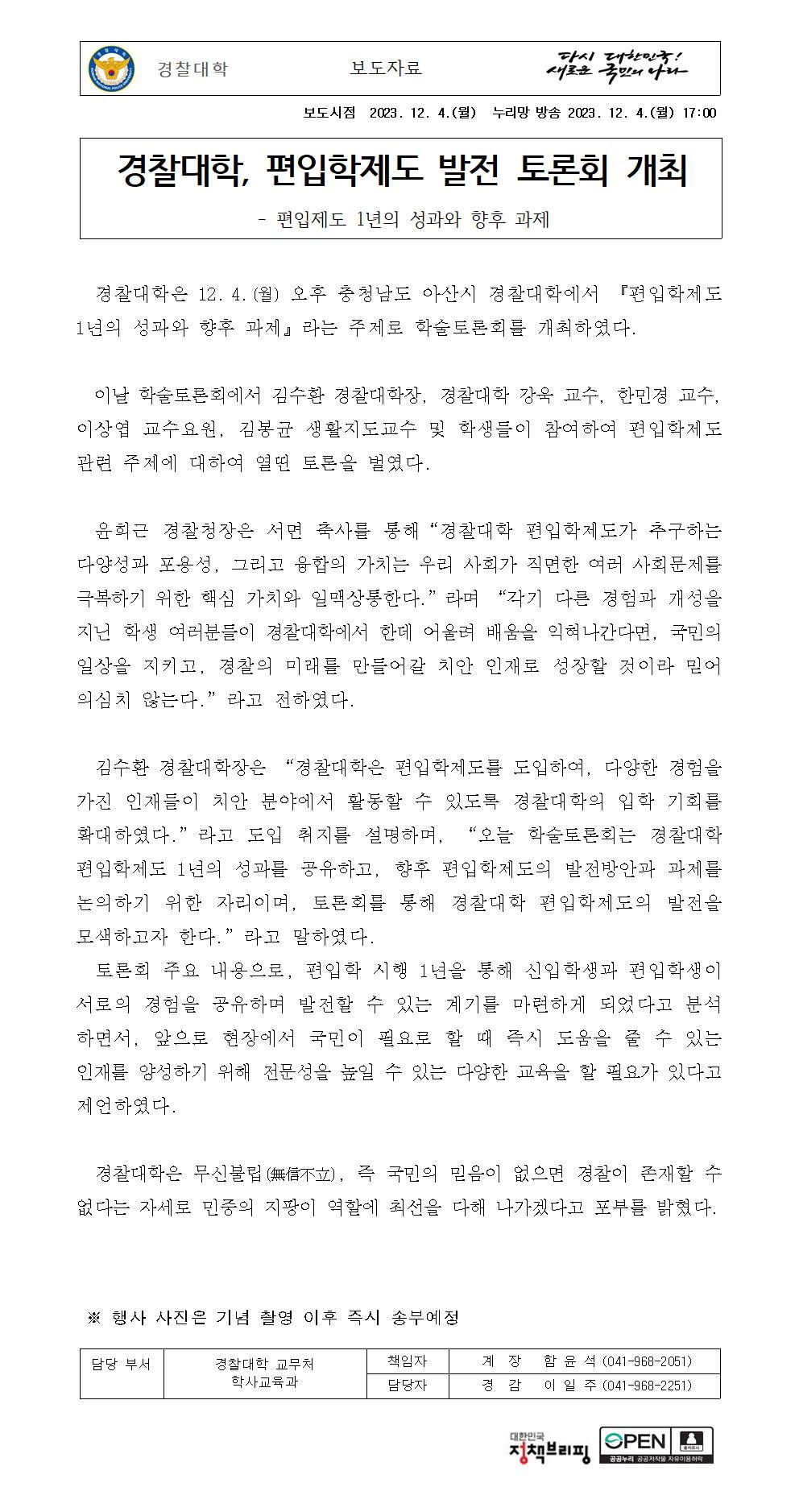 231204 (17시) 경찰대학 편입학 제도 발전 세미나(경찰대학).hwp