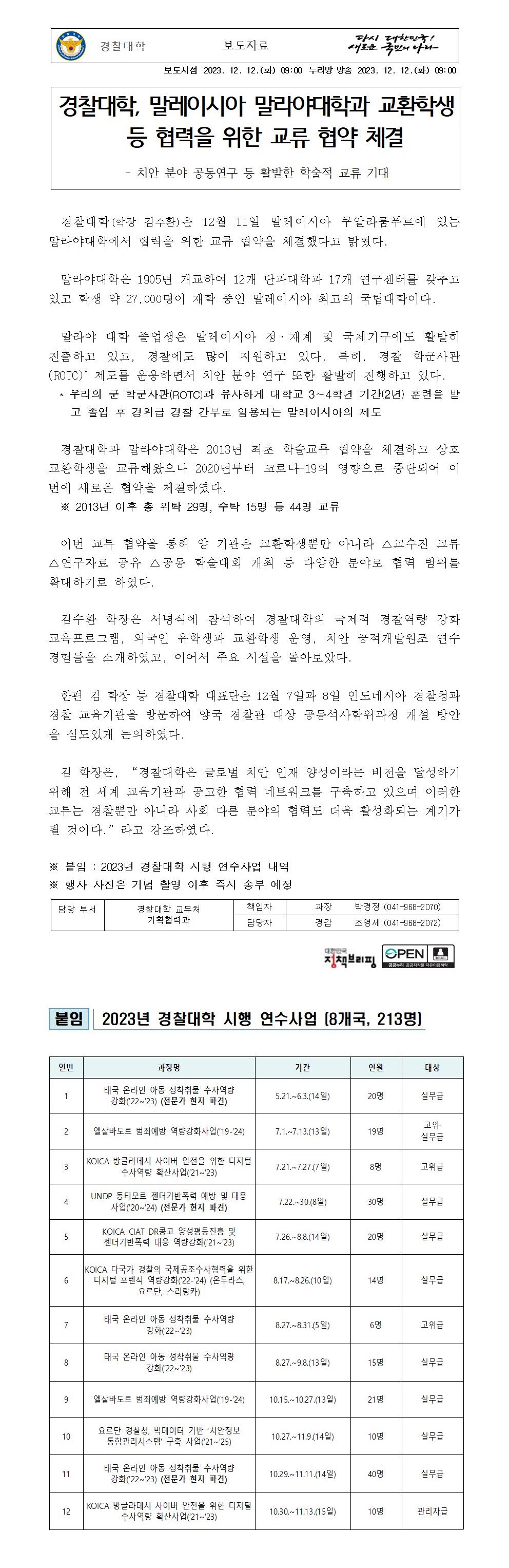 231212 (9시) 경찰대학_말레이시아 말라야 대학 MOU 체결(최종_배포용).hwp
