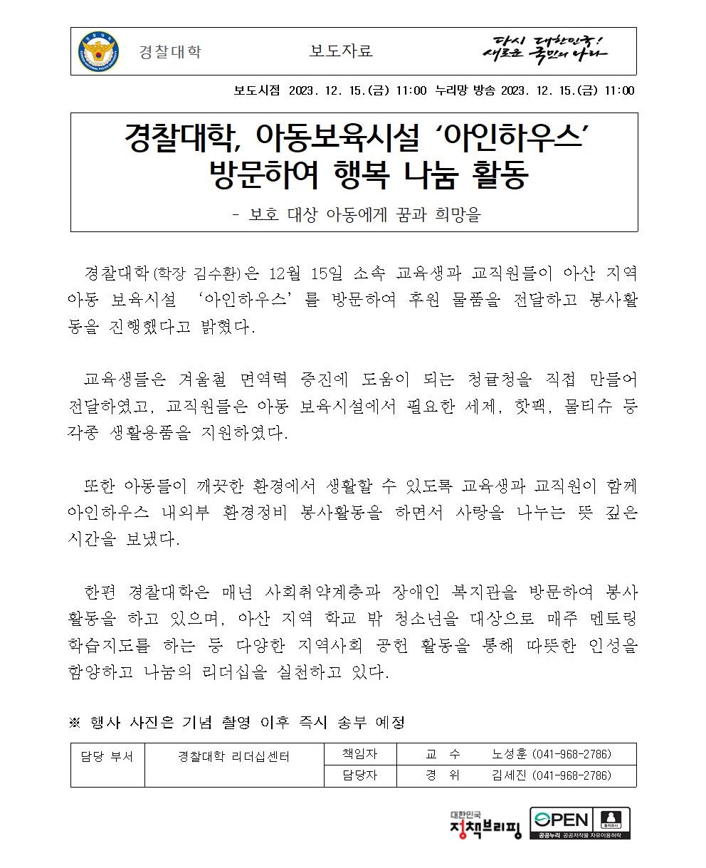 231215 (11시) 경찰대학 연말 사회공헌 활동 보도자료(배포용).hwp
