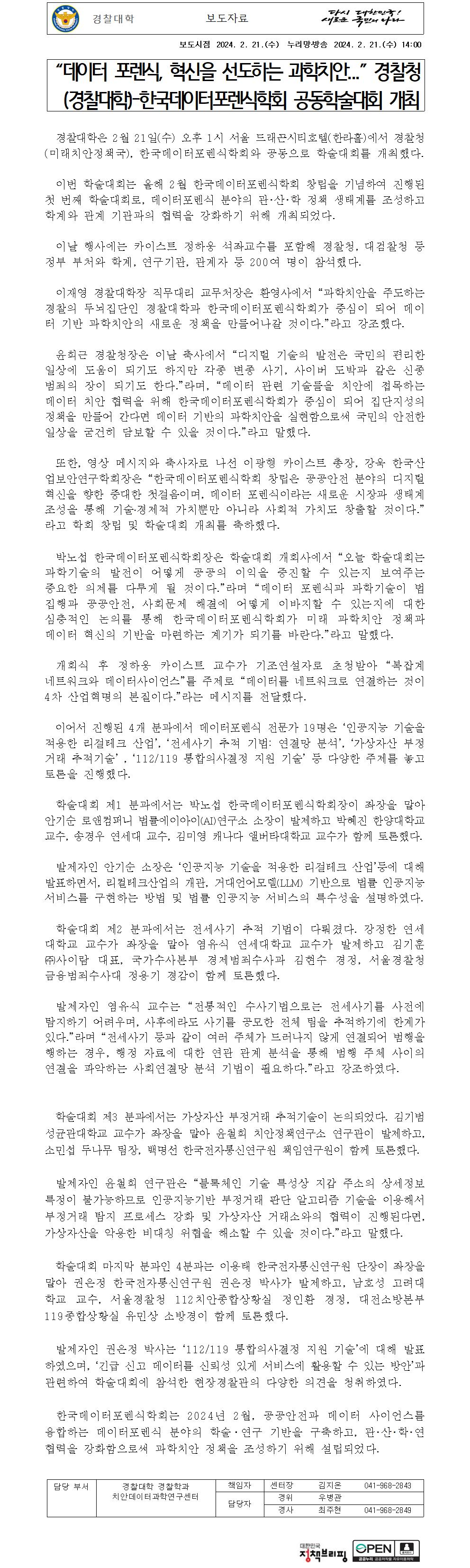치안데이터과학연구센터 학술대회 학술세미나 보도자료