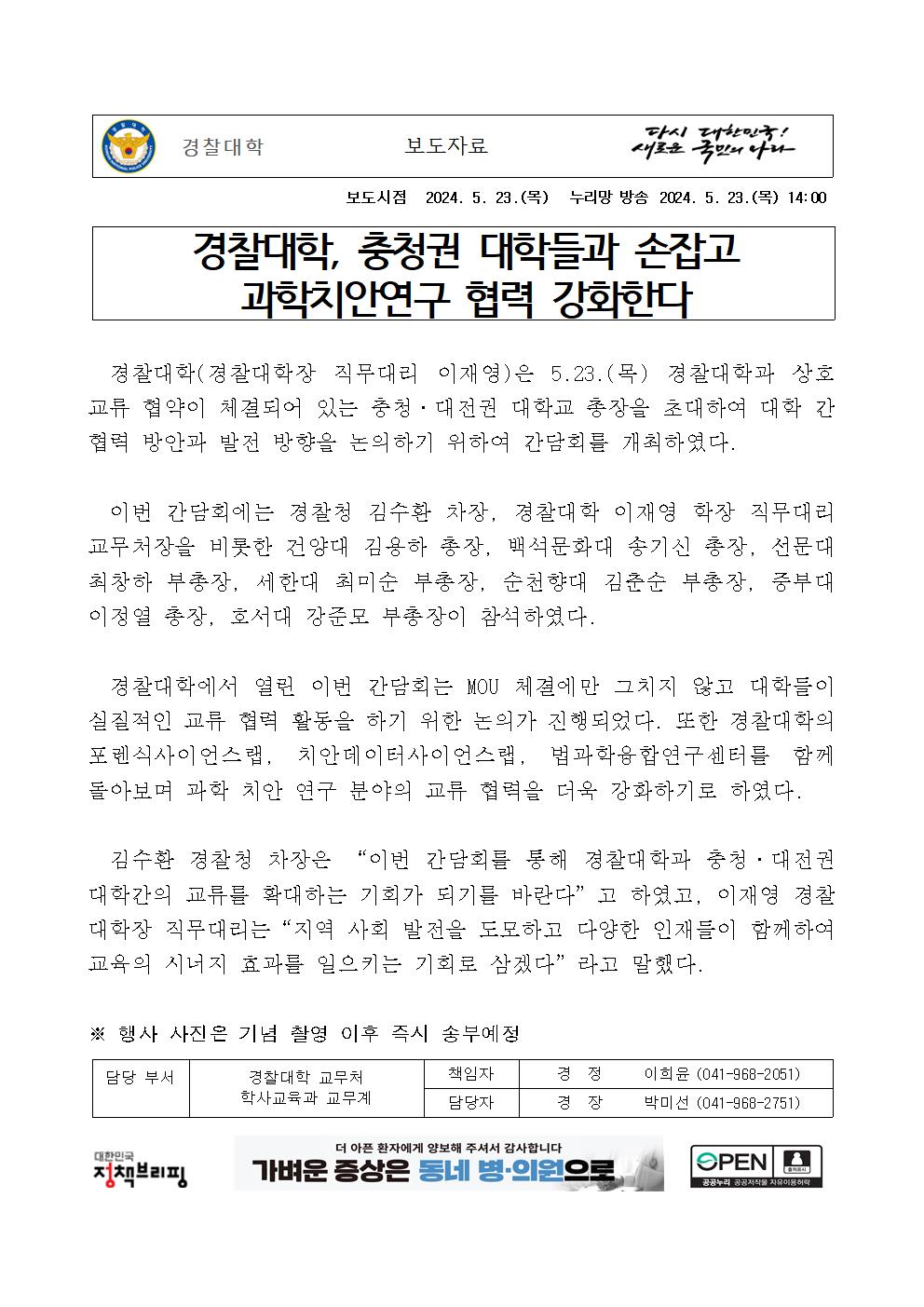 경찰대학 업무협약 체결 대학 간담회 보도