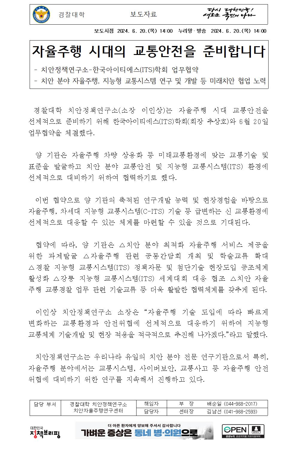 치안정책연구소_자율주행센터 ITS학회 업무협약
