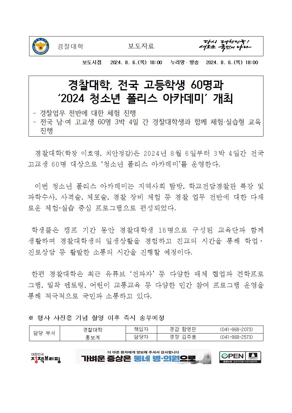 ‘2024 청소년 폴리스 아카데미’ 개최