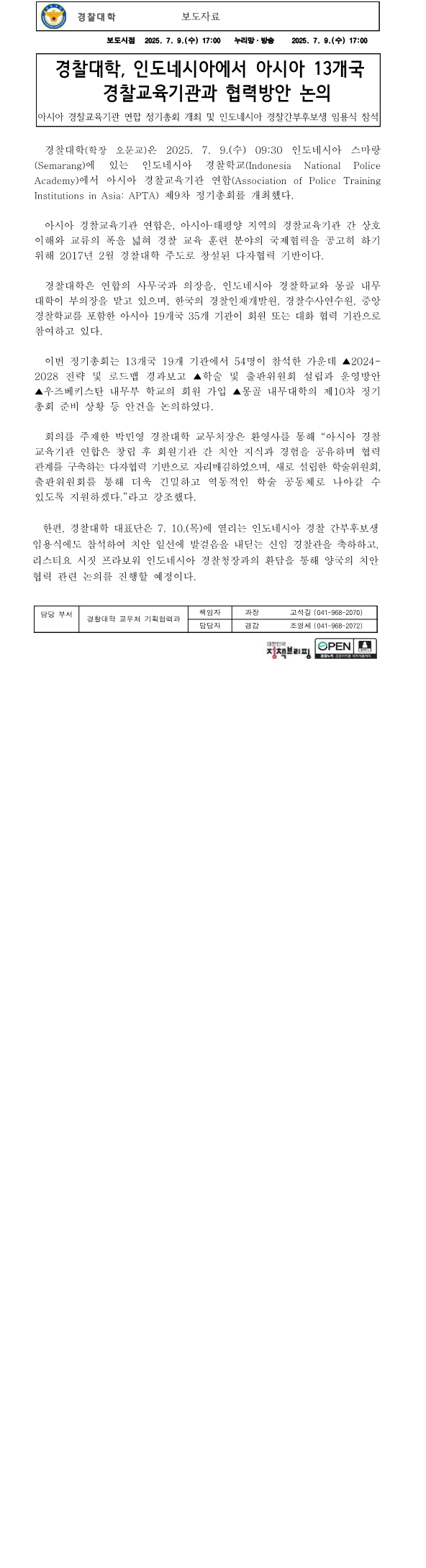 경찰대학, 인도네시아에서 아시아 13개국 경찰교육기관과 협력방안 논의