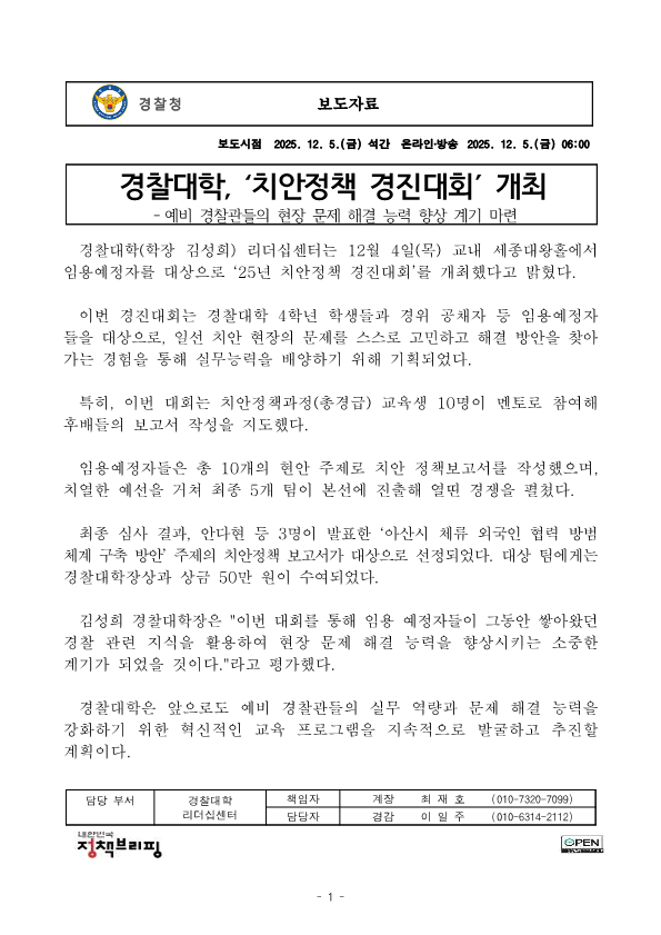 경찰대학, '치안정책 경진대회' 개최